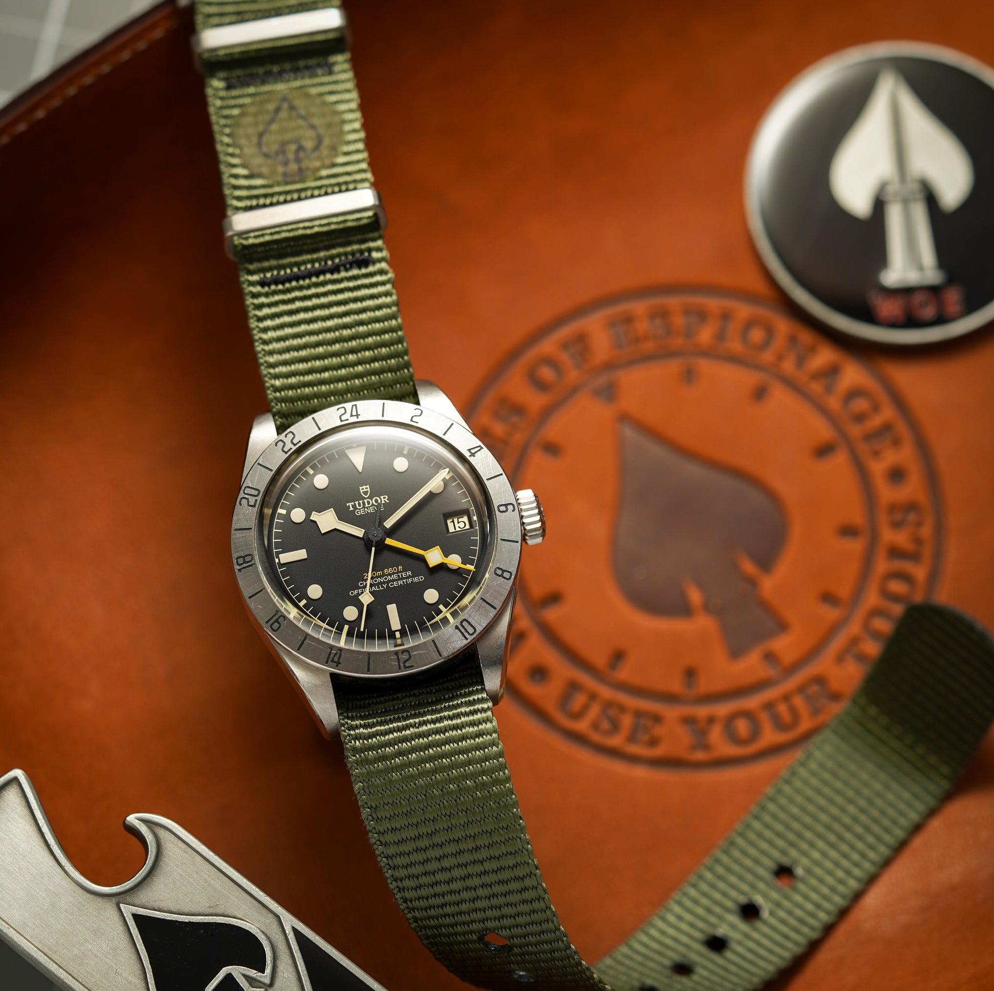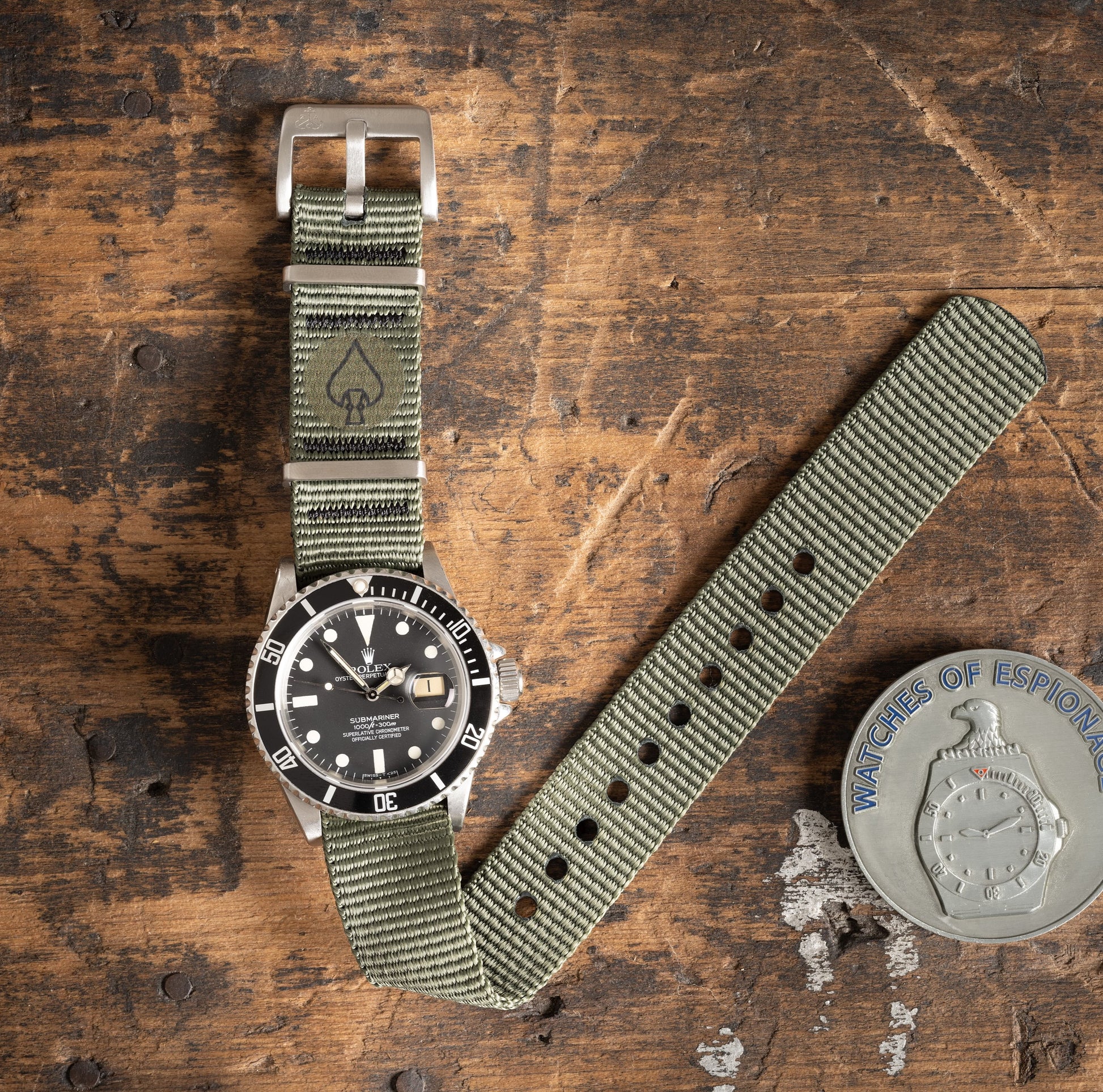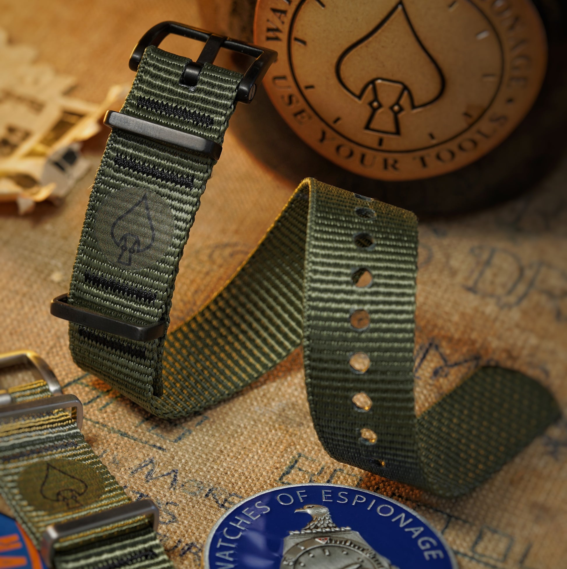 The watch strap contains a new W.O.E. patch based on the OSS spearhead and an hourglass base. In line with our community’s ethos, the insignia is visible when the strap is open, but covered up when the strap is fastened. Designed with the quiet professional in mind. The adhered patch also allowed us to shorten the length between the strap keepers.