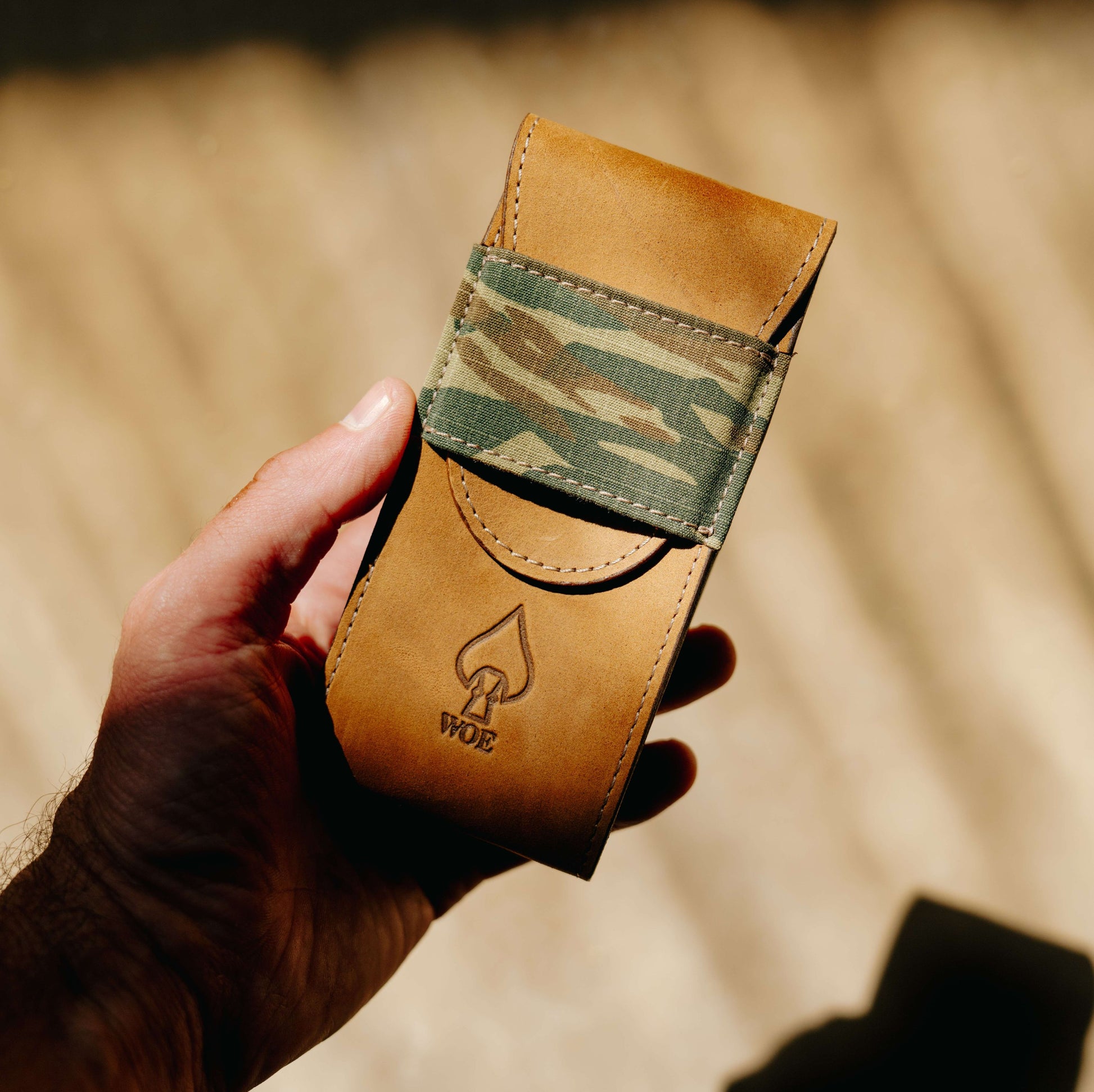 Each order includes a limited edition W.O.E. Challenge Coin. As of November 2022, we have upgraded leather to SB Foote, Mocha Burnside with a softer interior.