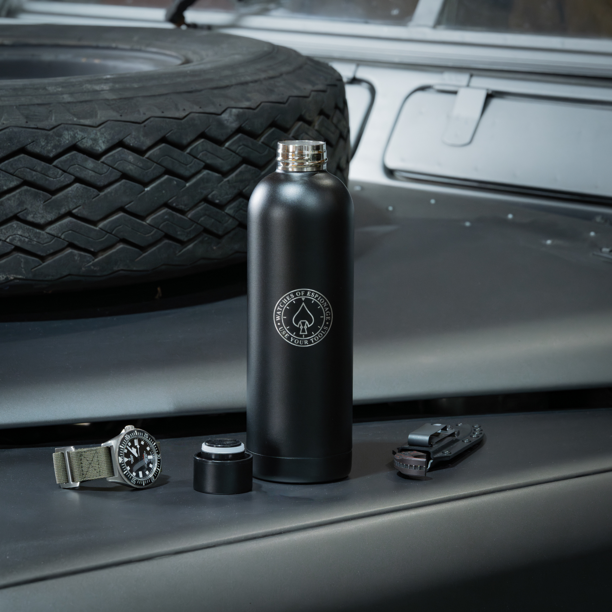 Capable of keeping 750 ML (25 OZ) of your favorite beverage hot or cold for hours, the Use Your Tools Water Bottle is a perfect “if you know, you know” tool for your EDC, and if someone recognizes you carrying one, you are sure to have a new friend.